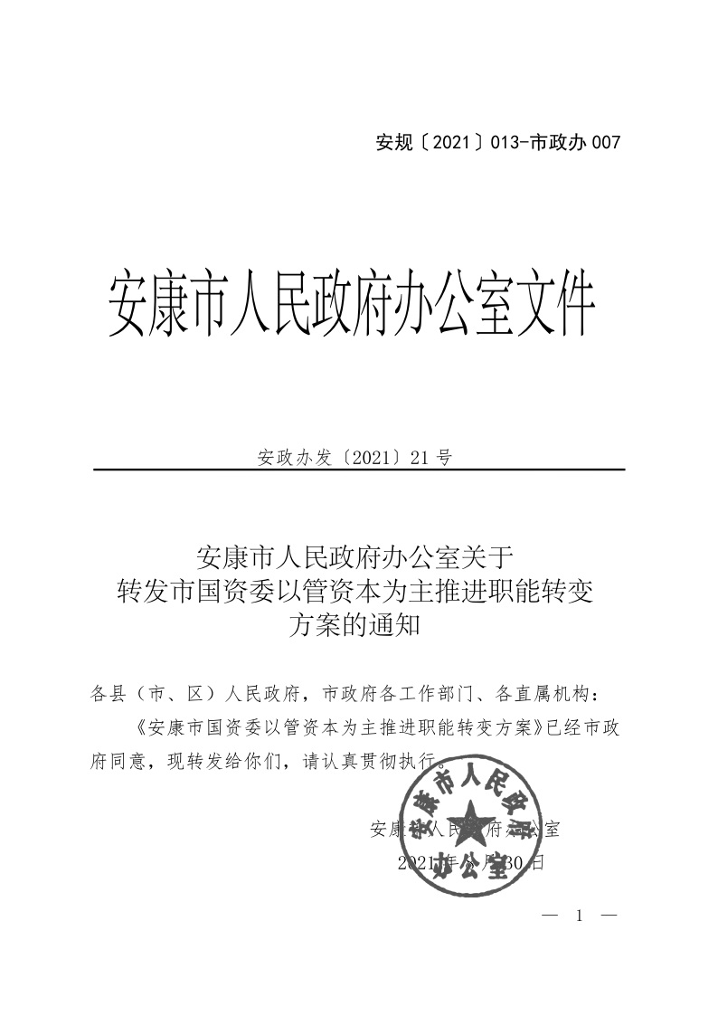 安康市國資委以管資本為主推進職能轉變方案